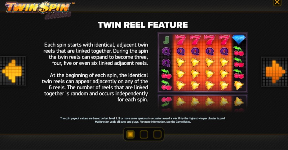 このゲームは、経験豊富なプレイヤーでも嬉しい驚きです。素晴らしいツインスピンデラックススロットマシンには、独自のインターフェイスと、各参加者のバランスを向上させる珍しいルールがあります。 3D要素と鮮やかなアニメーションの品質を確認することも価値があります。
